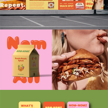 By treating the process as both strategic and playful, I delivered a system that could flex widely without ever losing its core identity. The result was a brand that didn’t just enter the fast food market, it disrupted it. Nom-Nomz turned everyday branding into an event, creating a lasting impression through a mix of nostalgia, boldness, and consistency.